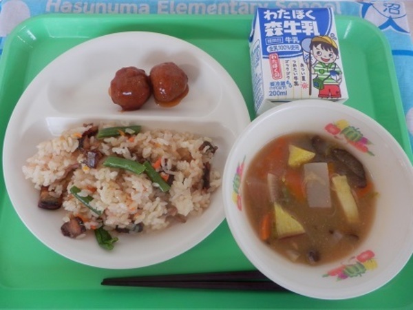 埼玉県産の食材は、牛乳、しめじ、米、さいたま市大宮区こんにゃく屋さんのこんにゃくです。旬の食材は、さんま、しめじ、ごぼう、さつま芋、根深ねぎです。