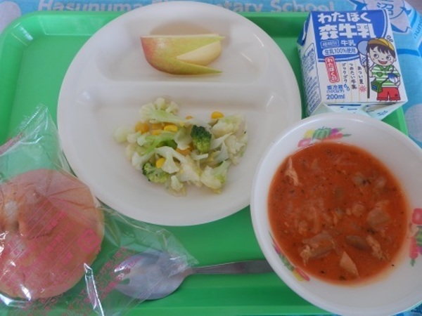 埼玉県産の食材は、牛乳、小麦粉、米粉、カリフラワーです。旬の食材は、りんごです。