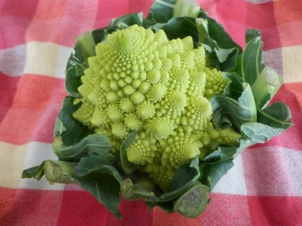 ロマネスコは、カリフラワーの仲間の野菜です。 見た目がとてもおもしろく、とんがった形のつぶつぶが、ぐるぐる並んでいます。おいしい時期は、冬(12月から2月ごろ)が旬です。 寒い時期にとれると、甘みが増しておいしくなります。